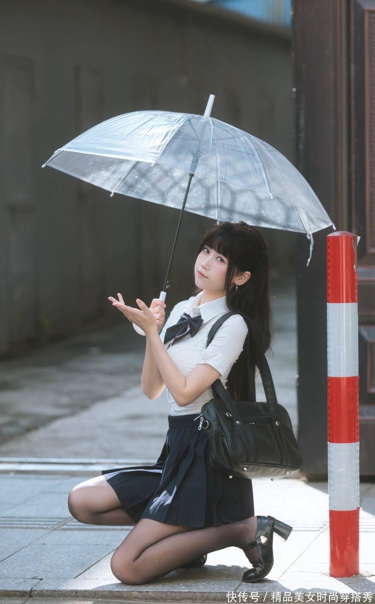 漫步在都市的脉络上,一位JK少女成了最亮丽的风景线! 手持透明雨伞,她仿佛从漫画中走出,清纯中带着一丝文艺范儿。 在空旷的街道上,她或跪或站,每一个姿势都散发着青春的气息。